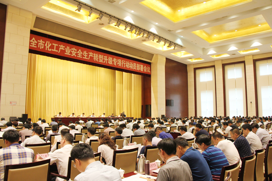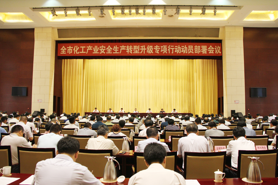 7月14日,市委、市政府召开全市化工产业安全生产转型升级专项行动动员部署会议。市委书记、市人大常委会主任周连华讲话,市委副书记、市长于海田主持;市委常委、秘书长尚龙江出席;市委常委、政法委书记韩国祥宣读《淄博市化工产业安全生产转型升级专项行动总体工作方案》,副市长、市公安局局长申延军宣读《淄博市化工产业安全隐患大排查快整治严执法紧急行动方案》。寿光市政府副市长张中山介绍了该市推动化工产业安全生产转型升级经验做法。