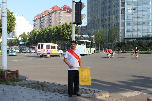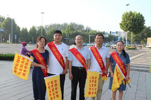 活动中,淄博市医药行业协会志愿者的红绶带,成为交通路口弘扬和传播文明出行的一道亮丽风景。